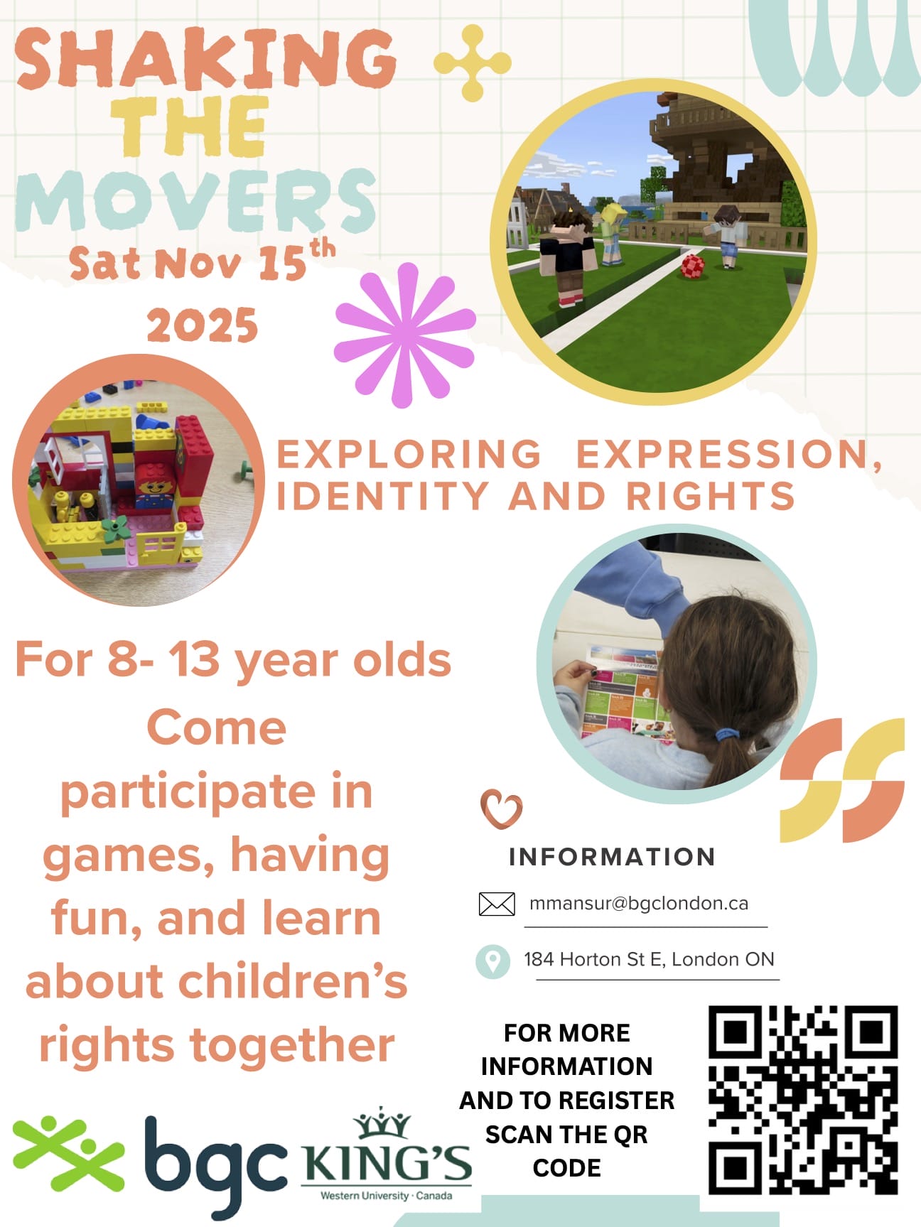 An opportunity for children ages 8-13 to join Shaking the Movers taking place in London, Ontario on Saturday November 15. Registration and more information can be found on the poster.